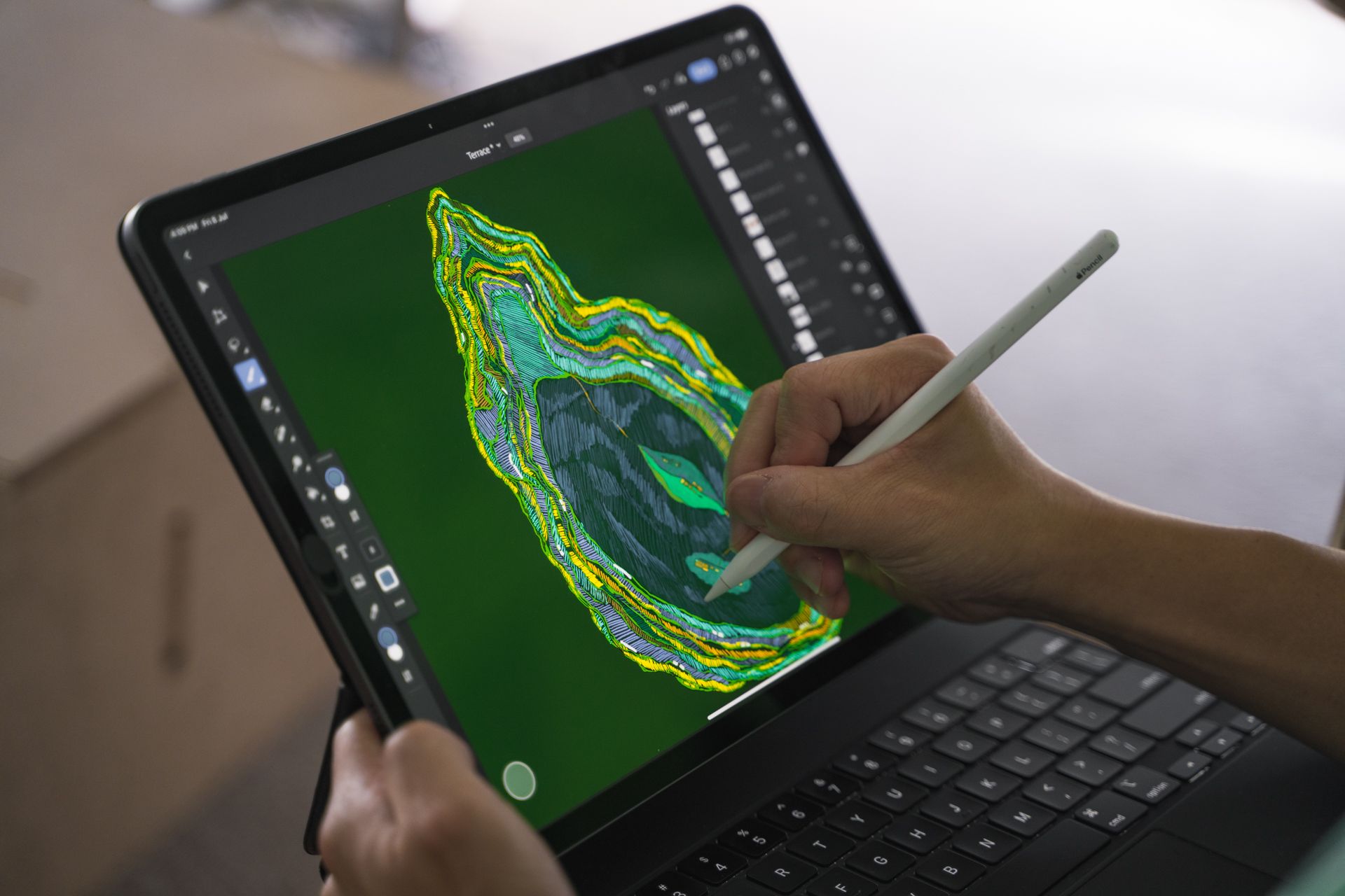 RF 它是在酒店大堂的 LED Wall,而酒店是在數碼港。它會按著時間而有所不同,日頭 Loop 到某個時間後就會轉為夜晚模式。這個 Project 其實跟我原來的工作生態有少許不同,因為我一直以來的角色主要都是 Animator,但我今次的 Title 是 Artist,感覺自己有少少跨到 Art 的界別。我有跟身邊的朋友分享「好開心,佢幾乎完全冇改過我任何嘢」,他們都說「梗係啦,佢搵你係 As 一個 Artist 的身份搵你,咁佢冇理由改你啲嘢㗎嘛」。其實酒店本身也有自己的 Signature 和 Features,因為它座落在一個好特別的位置,即是數碼港。數碼港前身是鋼綫灣,他們想保留 Cable、漁船和 Cargo Ship 的元素,亦想有一些山山水水的元素,因為不是每間酒店都靠山面海㗎嘛。他們大概 Brief 過我他們希望有甚麼元素,例如他們想呈現的效果是怎樣的,然後就讓我自己 Brainstorm 自己的想法。