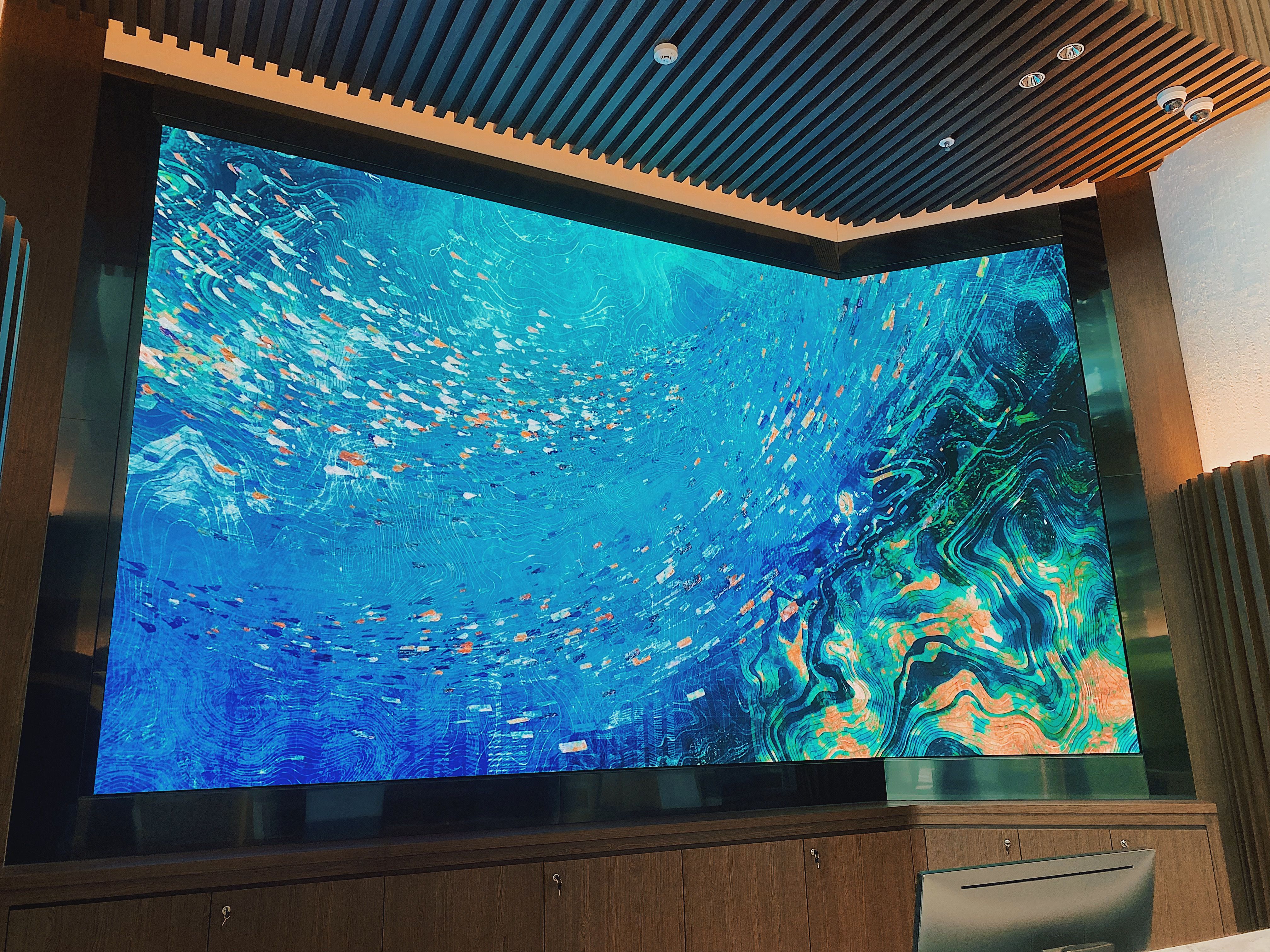 RF 開心啊,重開心到有啲嚇親添。首先是因為這是自己想做的事情兼且有個不錯的價錢,我想這是每個 Animator 的夢想。另外就是酒店真的好好。我本來只負責大堂的 LED Wall 和 Corridor 共兩塊 Wall,但後來酒店 Interior 的負責人叫我「不如你幫我哋做埋酒店 Floor」,叫我 Advice 一下他們會擺在每層的掛畫。我完全是受寵若驚,我未嘗試過這樣。